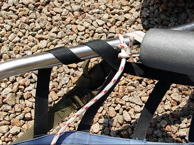 length of 25mm webbing is tied off on one side rail. It is then fed